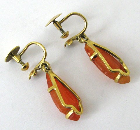 Par Frantz Hingelberg øreskruer af 14 kt. guld med rav