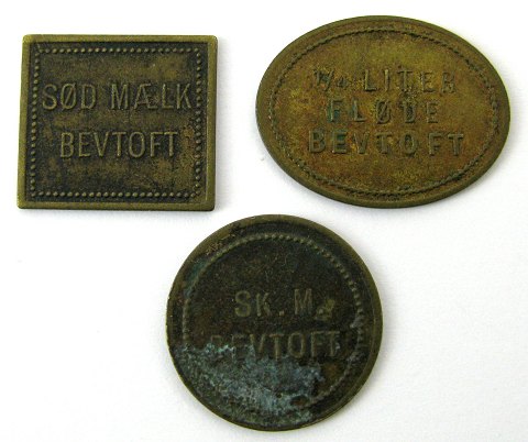 Rektangulær tegn for Sødmælk, ovalt tegn for 1/4 lt. fløde og rundt tegn for skummetmælk (SK.M.)