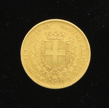 Italienske Stater, Sardinien, guld 20 lire, 1861