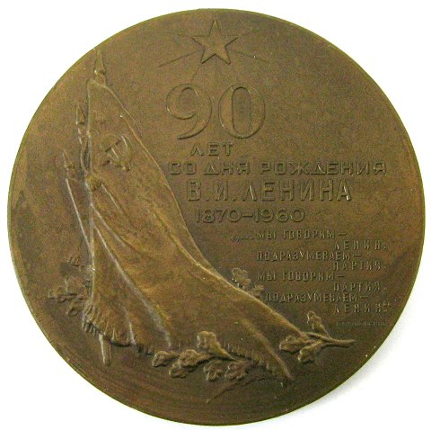 Medaille præget i anledning af 90 året for Lenins fødsel i 1870. Diameter 70 mm.