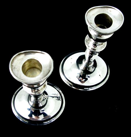 Par udfyldte stager af sølv på oval fod, herover glat stamme med balusterformet top, afsluttet med oval manchet. H. 20 cm.