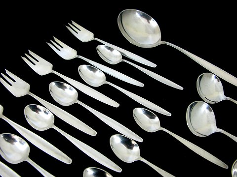Lot Cypres bestik af sterling sølv, bestående af 8 dessertgafler, 8 kaffeskeer, 6 théskeer, 1 grøntsagsske, 2 sukkerskeer, 1 marmeladeske og 1 saltske og 1 sauceske. 28 dele i alt. Samlet vægt 678 gr.