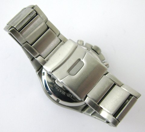 Ascor chronograph herrearmbåndsur, limiteret udgave 011, i urkasse og med lænke af mat børstet stål. Sort skive med separat sekundviser, datovisning i #4½ position samt chronograph funktioner. Quartzværk. Urkasse diameter 45 mm.