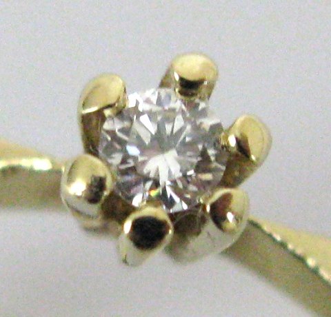 Ring af 14 kt. guld, prydet med brillantsleben diamant på 0,05 ct. Ring Str. 53½, samlet vægt 2,1 gr.