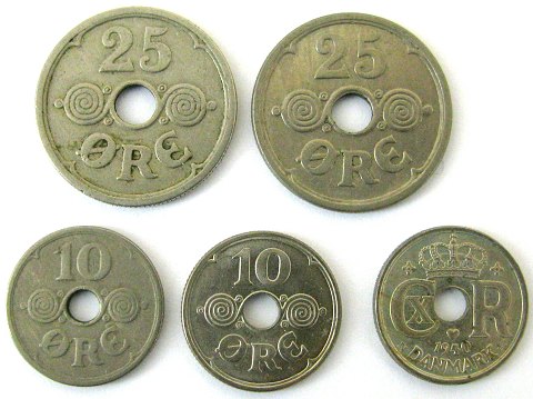 25 øre 1933, 1946 samt 10 øre 1933, 1939, og 1940.