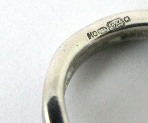 Vedhæng af sterling sølv, usædvanligvis prydet med tre små brillantslebne diamanter, samlet 0,015 ct. Samlet vægt 1,7 gr.