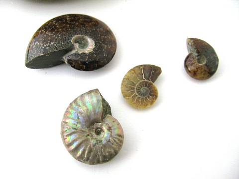 Samling fossiler, div. arter mellem 12 og 180 mio. år gamle