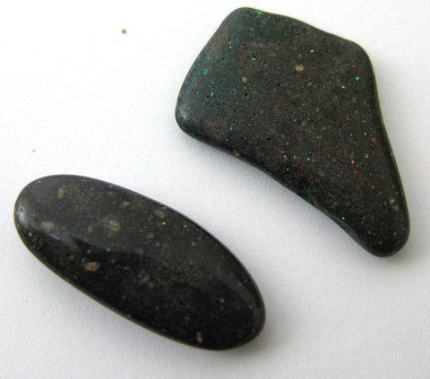 Lot rå opaler bestående af 2 stk. "Black Opal" fra Honduras, 4 lyse opaler fra Etiopien samt ildopal i kalksten fra Mexico.