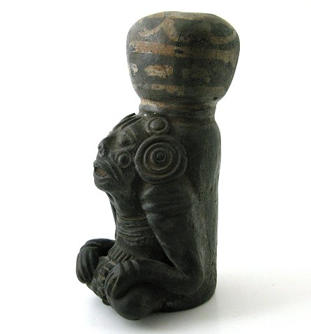Østerlandsk røgelseskar af brændt ler på siddende figur (Sydøstasien/Sydamerika?) H. 14,5 cm.