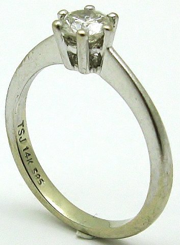 Ring af 14 kt. guld med brillantsleben diamant, Wesselton SI på 0,42 ct. i sekspunktfatning. Ring Str. 48½, samlet vægt 2,1 gr. Dansk udstedt certifikat medfølger.