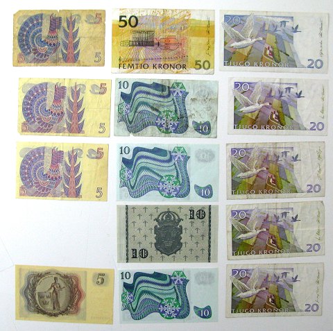Sverige, lot 5, 10, 20 og 50 kr - enkelte næsten ucirkuleret