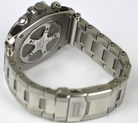 Festina chronograph herrearmbåndsur, ref. nr. F16273 i urkasse og med lænke af stål. Sort skive med separat sekundviser, stregindikation, dag- og datovisning i #1-3 positionen med forstørrelsesboble, chronograph funktioner. Quartsværk. Urkasse diameter 46 mm