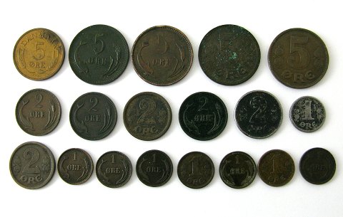 Christian IX, Christian X, Frederik IX, samling 1, 2 og 5 øre (19)
