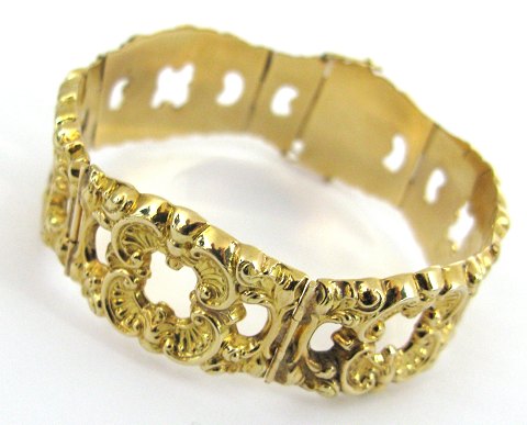 Flot armlænke med 6 led, overdådigt prydet med volutter. L. 18,5 cm., vægt 24,2 gr.