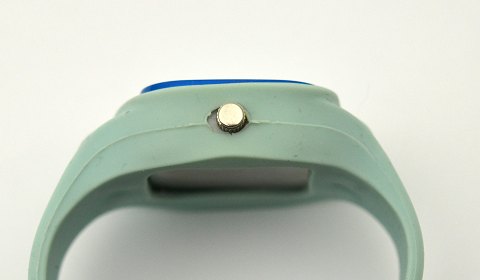 Mood "my life" ur. Urkasse af plastik, 38 x 38 mm med blåt plastik glas. omgivet af lys blå gummi med integreret gummi rem og metal spænde. Der er ingen dato og uret er ikke vandtæt.