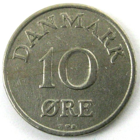 Danmark, 10 øre 1952 med manipuleret årstal til 1959