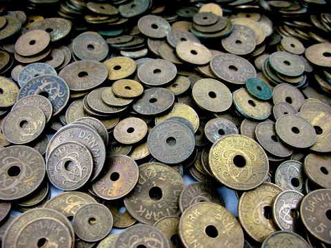 Christian X, 1, 2 og 5 øre 1927-1940, samling på 3,3 kg.
