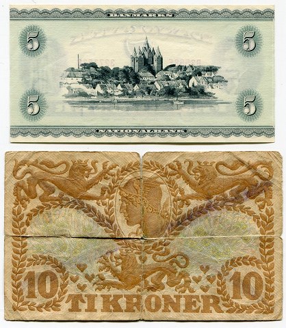 Danmark 5 kr 1956 ucirkuleret og 10 kr 1941 Q7 (2)