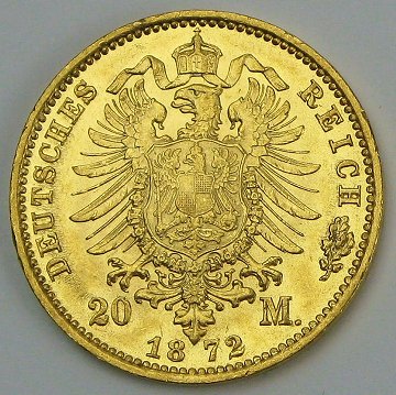 Preussen, Wilhelm I, 20 mark GULD 1872A - KM 50