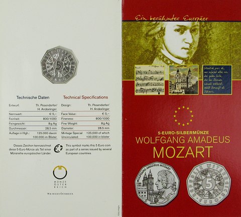 Præget i anledning af Wolfgang Amadeus Mozart's 250 års dag. Ilagt i møntsæt - Ucirkuleret.