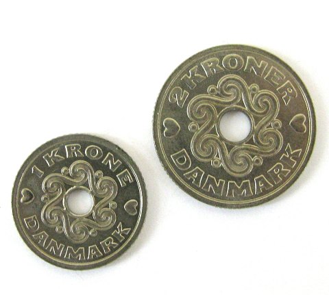 Danmark, prøvemønt 1 kr 1990 og 2 kr 1990