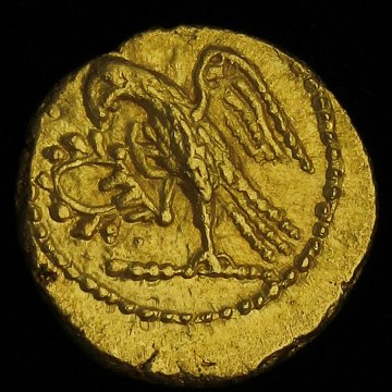 Bagsiden afbilleder en ørn med spredte vinger, stående mod venstre på et scepter, en laurbærkrans i dens ene klo.