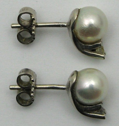 Par ørestikker af hvidguld 14 kt. hver prydet med kulturperle og lille brillant