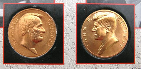 Mønt og medaillesæt med 7 almindelige mønter og 2 medailler med hhv. Lincoln og Kennedy