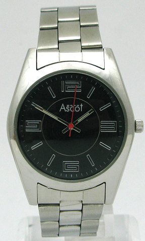 Ascot herre ur af stål. ref. AN9-AU200. Quartz værk. Stål kasse, 38 mm diameter og lænke af stål. Mineral glas. Sort skive. Vandtæt til 3 atm.