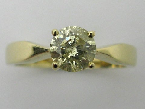 Solitairering af guld 14 kt. prydet med brillant ca. 0,90 ct.