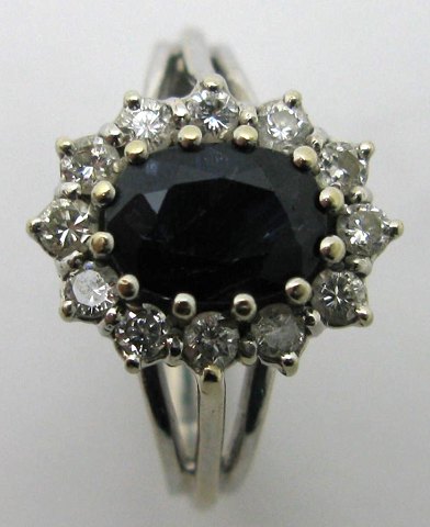 Rosetring af hvidguld 14 kt. prydet med safir omkranset af 12 brillanter