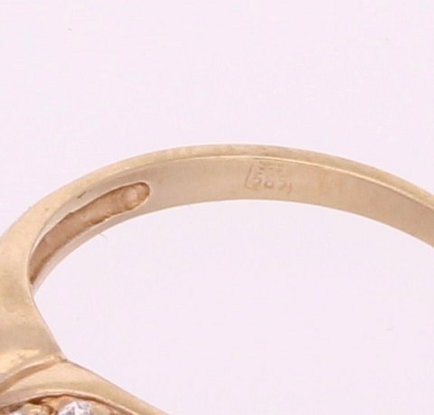 Ring af guld 14 kt. prydet med blå safir og 3 små hvide safirer