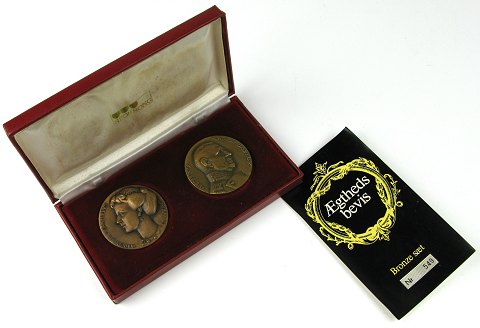 Erindrings medaillesæt af bronze, præget i anledning af tronskiftet 1972. Diam. 45 mm. Original opbevaringsæske og ægthedscertifikat medfølger.
