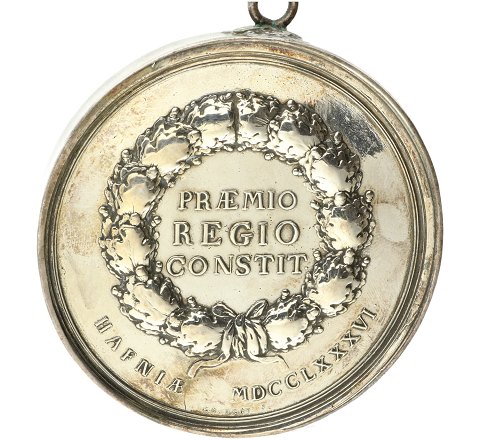 Forside: Krans af egeløv. I midten inskriptionen: PRÆMIO REGIO CONSTIT HAFNIÆ MDCCLXXXVI