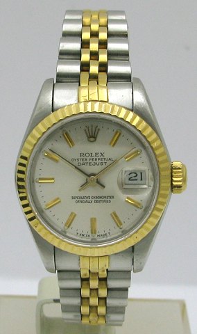 Rolex Oyster Perpetual damearmbåndsur, ref. nr. 69173 model Datejust i kasse og med jubileelænke af 18 kt. guld og stål, sølvfarvet skive med punktindeks, datoangivelse ved 3" position, automatisk værk. Urkasse diameter 26 mm.