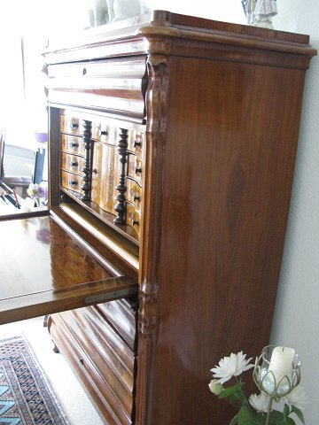 Dansk senempire sekretær af mahogni med intarsia. Ca. 1850