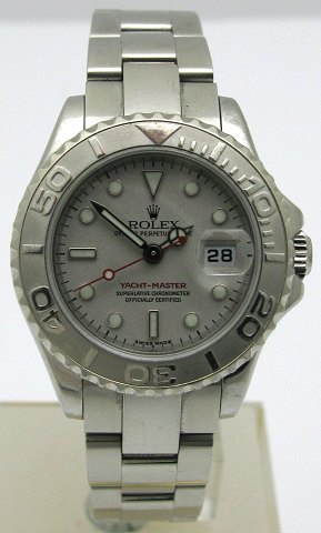Rolex Yachtmaster Dame ur, stål med platin drejekrans. Ref. 169622 Y. Kasse af stål. 29 mm diameter.