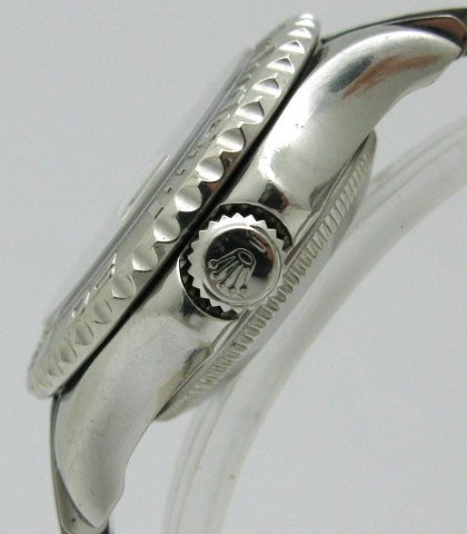 Automatik værk. Grå skive med punkt index. Rød sekundviser. Stål lænke.