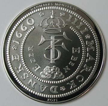 Medaille af sterlingsølv fra serien "Danmarks Møntskat". Ø. 38,7 mm.