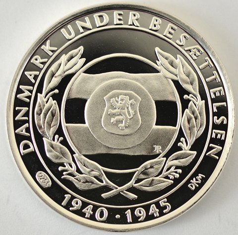 Sølvmedaille fra serien Danmark under besættelsen 1940-45. Slået på den Kongelige Mønt. Vægt 27,03 gram - diameter 36mm. Indeholder 25 gr finsølv.