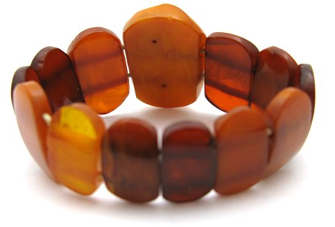 Armbånd af slebne ravstykker - monteret med elastik