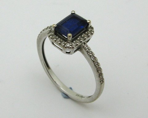 Ring af guld 9 kt prydet med blå safir omkranset af hvide safirer
