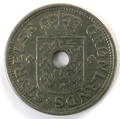 Grønlands Styrelse, 25 øre m/hul, kobbernikkel, 1926 HCN Sieg 2, H3