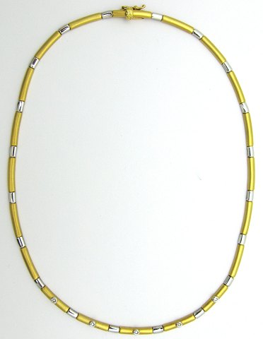 Prydet med 5 små brillanter. Længde 42 cm. Vægt ca. 18 gr.