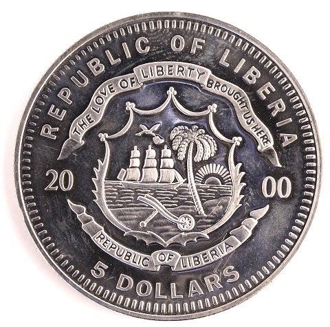 Liberia, 5 Dollar, 2000, kobbernikkel