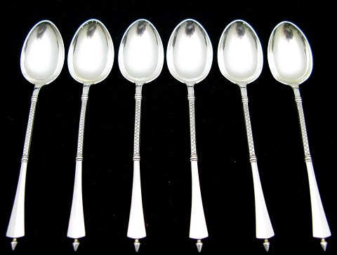 12 diverse kaffeskeer af sølv (2 sæt af 6 stk)