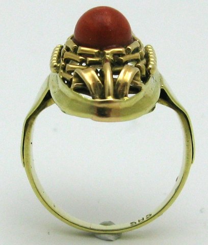 Ring af guld, 14 kt. prydet med koral