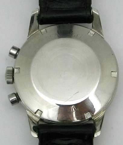 Kasse af stål 37 mm diameter med plastglas. Sølv farvet skive med forgyldte visere og index. Værket er i meget fin stand og fungere perfekt. Original rem med stål spænde.