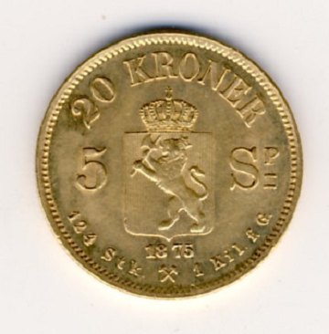 20 kr / 5 speciedaler 1875 GULD