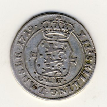 Frederik IV, 12 skilling 1719, MED SKJOLD, H.48